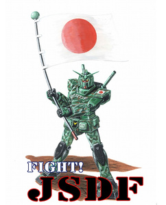 アニメ「機動戦士ガンダム」のモビルスーツなどを手がけたメカニックデザイナーの大河原邦男さんが、東日本大震災の被災地で復興作業などにあたる自衛隊を応援するため、日本国旗を持った“迷彩柄ガンダム”のイラストをTwitterに投稿しました。イラストには、自衛隊にエールを送る「FIGHT! JSDF」の文字が添えられています。