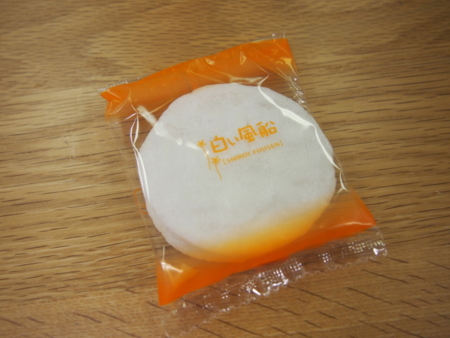 最後に、柔らかなせんべいでクリームを挟んだ「白い風船」を選んでみました。こちらは2つに分けることができるので、ホイップアイスをサンドしてみました。