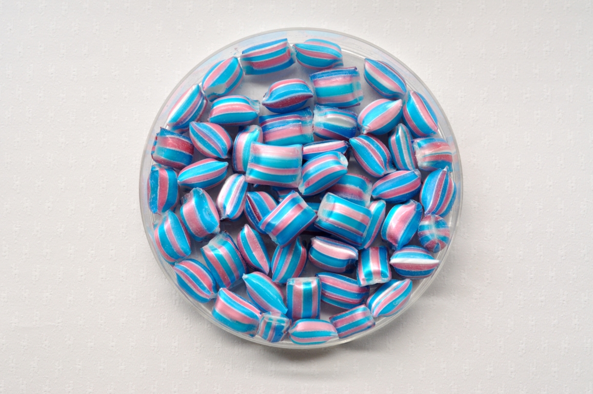 京都本店(下京区)限定の「シェルブールの雨傘」は、フランス映画「シェルブールの雨傘」で主人公のカトリーヌ・ドヌーヴが着ていたドレスの配色をモチーフにしています。味は、さわやかでほどよい甘さのヨーグルト風味。かむと、サクサクとした独特の食感が楽しめます。
