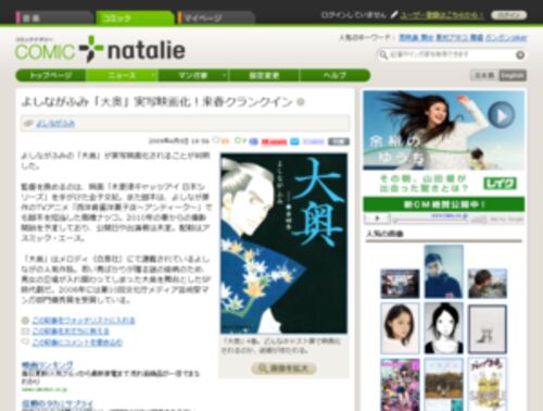よしながふみさん作の漫画『大奥』が、実写映画化されることが決まりました。「大奥」は、白泉社の「メロディ」で連載されている人気SF時代劇作品で、謎の疫病により若い男性が激減し、男女の立場が逆転して、第三代将軍徳川家光以降は女性が将軍職を勤める…