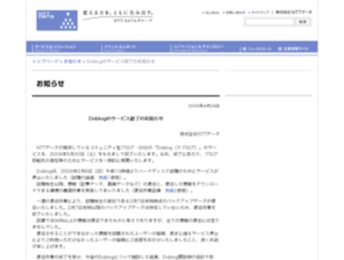 NTTデータが2003年11月より運営してきたブログサービス「Doblog」が、今年の5月30日をもって終了することが発表されました。その終了理由に、ネットユーザーからは戸惑いの声もあるようです。 Doblogのサービス終了のお知らせ | お知らせ | NTTデータDoblog…