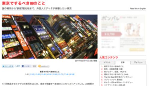 今週(2011/2/26-2011/3/4)のはてなブックマークで話題になった人気エントリーのランキングトップ10と、ニュース編集部のオススメエントリーをご紹介します。今週は、“東京に来たら体験しておくべきこと”を88個集めたエントリーが注目を集めました。あなた…