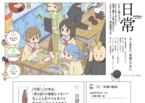 2011年4月~9月に独立局系で放送されたテレビアニメ「日常」が、1月7日(土)からNHKのEテレで“再放送”されます。全12話の放送で、Eテレ用の再編集版とのこと。放送スケジュールは、毎週土曜日の午後5時55分からです。 ▽ http://www9.nhk.or.jp/anime/nichij…