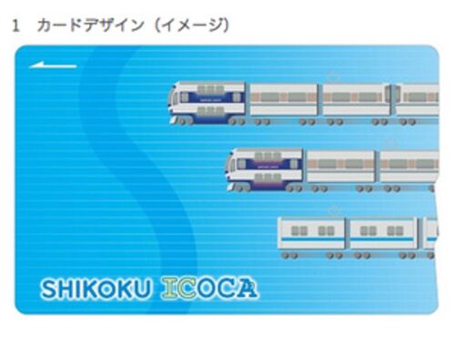 JR四国が2014年春に発売するICカード乗車券「SHIKOKU ICOCA」のデザインが発表されました。JR西日本が展開する「ICOCA」に、オリジナルデザインを採用。青いグラデーションを背景に、3つの列車が並んでいます。販売場所はJR四国の高松駅、端岡駅、坂出駅、宇…