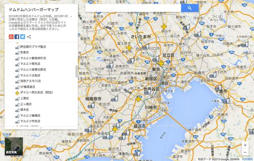 ハンバーガーチェーン・ドムドムハンバーガーをこよなく愛するファンによって作られた「ドムドムハンバーガーマップ」が、はてなブックマークで話題を呼んでいます。全国にある店舗をGoogle マップにマッピングしており、2013年に作成したものをバージョンア…