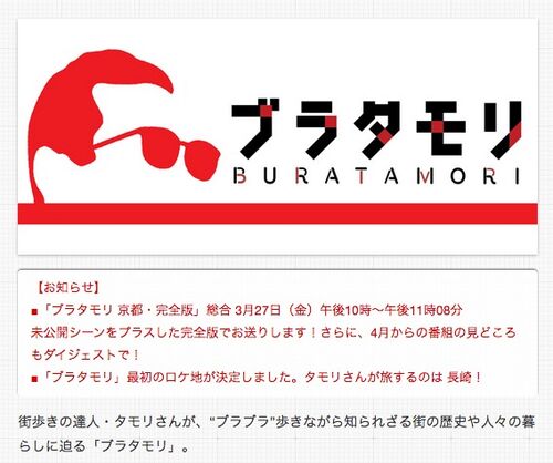 タレント・タモリさんが街を探索するNHK総合の番組「ブラタモリ」は、3月27日(金)に「京都・完全版」を放送します。1月に放送した京都編に未公開シーンを加えた内容で、4月からスタートするレギュラー放送の見どころも紹介するとのこと。放送時間は午後10…