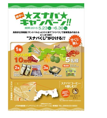 「鳥取にはスタバはないですけれども、“日本一のスナバ”があります」という県知事のコメントで話題を呼んだ鳥取県は、観光や特産物の知名度向上を目的としたプロジェクト「勝手にスナバキャンペーン」を5月23日(土)に開始します。期間中はスナバ(砂丘)に…
