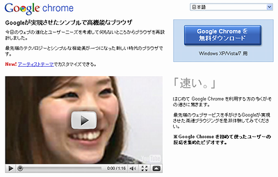 米Googleは1月25日(現地時間)、Webブラウザ「Google Chrome 4」のWindows向け正式版をリリースしました。GoogleのWebサイトからダウンロードでき、Chromeの自動アップデート機能による通知も行われます。対応OSはWindows 7/Vista/XP。