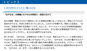 ▽ISAS | 「はやぶさ」の帰還とカプセルの再突入・回収にむけて / トピックス