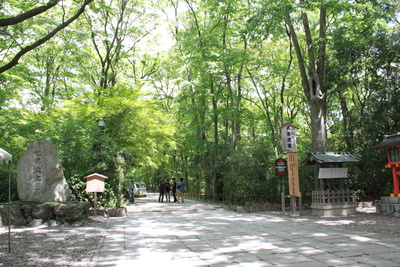 まるで木のトンネルのような糺の森の参道。こちらを通って、本殿に向かいます