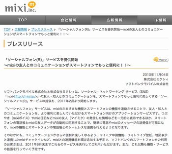 ソフトバンクモバイルとmixiは本日11月4日(木)、ソーシャルネットワーキングサービス(SNS)「mixi」をスマートフォンでより便利に利用できるサービス「ソーシャルフォン」を発表しました。サービス開始は2011年2月から。ソフトバンクのスマートフォンで先行利用できます。