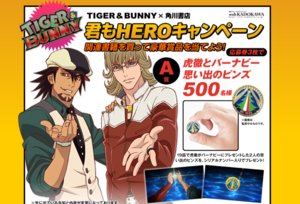テレビアニメ「TIGER & BUNNY」と角川書店のキャンペーン、「TIGER & BUNNY×角川書店 君もHEROキャンペーン」が、9月10日(土)から11月9日(水)まで開催されます。指定の用紙に応募券を貼って応募すると、作中に登場した“2人の思い出のピンズ”などの商品が当たります。