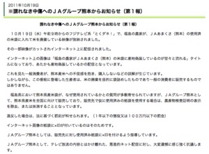JAグループ熊本は10月19日(水)、2ちゃんねるのまとめサイトなどに「福島の農家がJAあまくさ(熊本)の米袋を使って産地偽装している」などの誤解を招く情報や画像が掲載されていることについて、「強く抗議する」とのコメントをサイトで発表しました。併せて、福島県で熊本産の米袋が使用されている理由を説明しています。