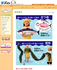 見た目も使い方も斬新な「おいしいだしのぬいぐるみ」シリーズに、はてなブックマークのコメント欄には「欲しいぞw」「かつお実物大はともかく昆布は無意味じゃ・・・えー!3メートルもあんのか!」「かつおと昆布のぬいぐるみ。まだかつおは判らんでもないが、昆布はぬいぐるみの概念に揺さぶりをかけてくる」といった声が集まっています。