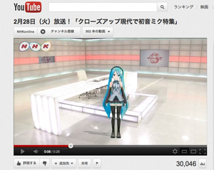 NHK総合の情報番組「クローズアップ現代」は2月28日(火)午後7時30分から、「思いが伝わる声を作れ ~初音ミク 歌声の秘密~」を放送します。ボーカロイド「初音ミク」がスタジオに登場し歌声を披露するほか、音声合成技術の医療応用を取り上げます。はてなブックマークでは、特集内容はもちろんのこと、番組ディレクターの“情熱”にも注目が集まっています。