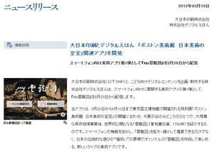 大日本印刷とデジタルえほんは3月20日(火)、スマートフォン向け美術アプリ「My雲龍図」の配信を開始しました。東京・上野の東京国立博物館で開催中の特別展「ボストン美術館 日本美術の至宝」に合わせ、みどころの1つである「雲龍図」を紹介しています。