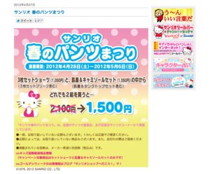 サンリオは5月6日(日)まで、ショーツやキャミソールがお得に購入できる「サンリオ 春のパンツまつり」を全国の店舗で開催します。はてなブックマークでは、このキャンペーン名があの“パンまつり”を連想させると話題を呼んでいます。