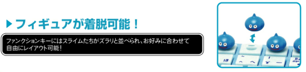 家庭用ゲーム機の周辺機器などを製造・販売するHORIは8月2日(木)、RPG「ドラゴンクエスト」シリーズに登場するモンスター「スライム」をイメージしたUSBキーボードを発売します。各キーにはスライムをプリント。ファンクションキーでは、スライムのフィギュアを着脱できます。価格は3,980円(税込)です。