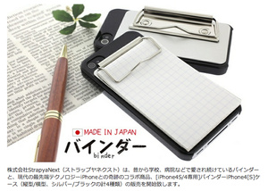 「バインダーiPhone4[S]ケース」は、その名の通りiPhoneケースの背面にバインダーが付いた商品です。メモ用紙を挟めば手書きでメモを取れるほか、ズボンやかばんのポケットに引っ掛けることもできます。