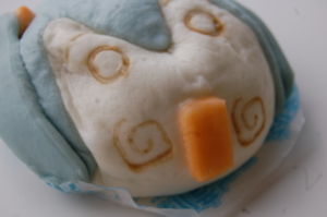 編集部も早速、数量限定の「はちゅねミク肉まん」を購入してみました。肉まんは3色の生地で作られており、目や頬は焼印で描かれています。1つ1つ手作業で仕上げられているためか、商品によって表情が異なっていました。ためらいつつ中を割ってみると、食欲をそそる匂いが漂います。中のあんには豚肉とネギが加わっており、しっかりと味付けされていました。
