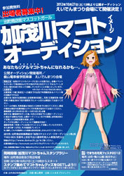 出町商店街振興組合(京都市上京区)は、商店街の“萌えキャラ”加茂川マコトのイメージに近い女性を一般から選ぶ「加茂川マコトイメージオーディション」を開催します。応募書類の締め切りは10月10日(水)必着。オーディションに合格した女性は、各種イベントや商店街のPRなど、2次元の加茂川マコトではカバーしきれない分野の活動を担当します。