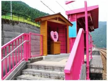 ▽ 静かな山間の駅がピンク色!智頭急行の秘境の駅が一変!(PDF)