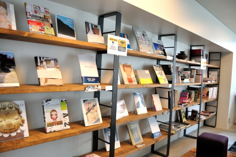 ライブラリスペースには、大きなソファーと本棚。アート本などを発刊している出版社「FOIL」の本が自由に読めます。