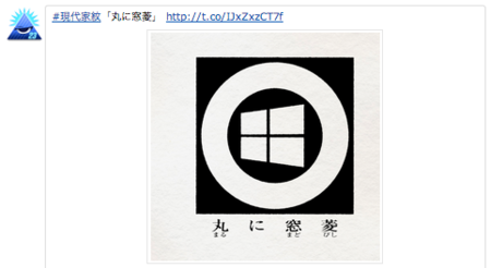 現代家紋は「#現代家紋」のハッシュタグ付きでTwitterに投稿され、斬新なアイデアや、それぞれの家紋に添えられたユニークな名称などが話題を呼びました。これらをまとめたTogetterでは、SDカードを4つ組み合わせた「糸輪に四つSD」、Windowsのマークをあしらった「丸に窓菱(まどびし)」などが紹介されています。